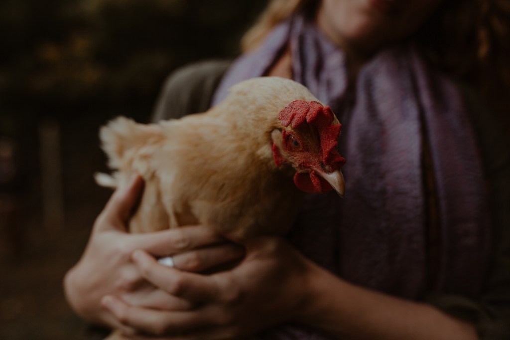 I joined the hens. I wanted to make sure they were safe and calm for the transport. The trip was slow and steady with my husband navigating every turn and bump carefully. When we finally arrived at the farm, the photographer was there waiting. Perfect timing. In addition, the rain had subsided and the radar on my phone indicated we had a window of about an hour before the rain returned. It was “go time”.