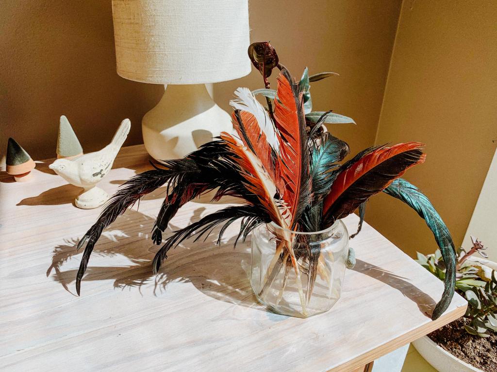 This cheap and handy tool proved to be an asset. I discovered my unknown ability to cut around the bird’s anus with precision without rupturing the bowel. I am now a “near expert” at butthole and bowel removal. Surprising, huh? If you are harvesting a bird, get this handy little tool. Moments after the most difficult stage in harvesting the birds, I found this heart shaped rock embedded in the ground just a few feet away from the table in which we were going to continue the process. It reminded me to do all things with love and care. A collection of feathers I gathered after harvesting the roosters. They are a simple reminder of the majestic roosters that resided on our farm and through their gift of meat will nourish us in the future.